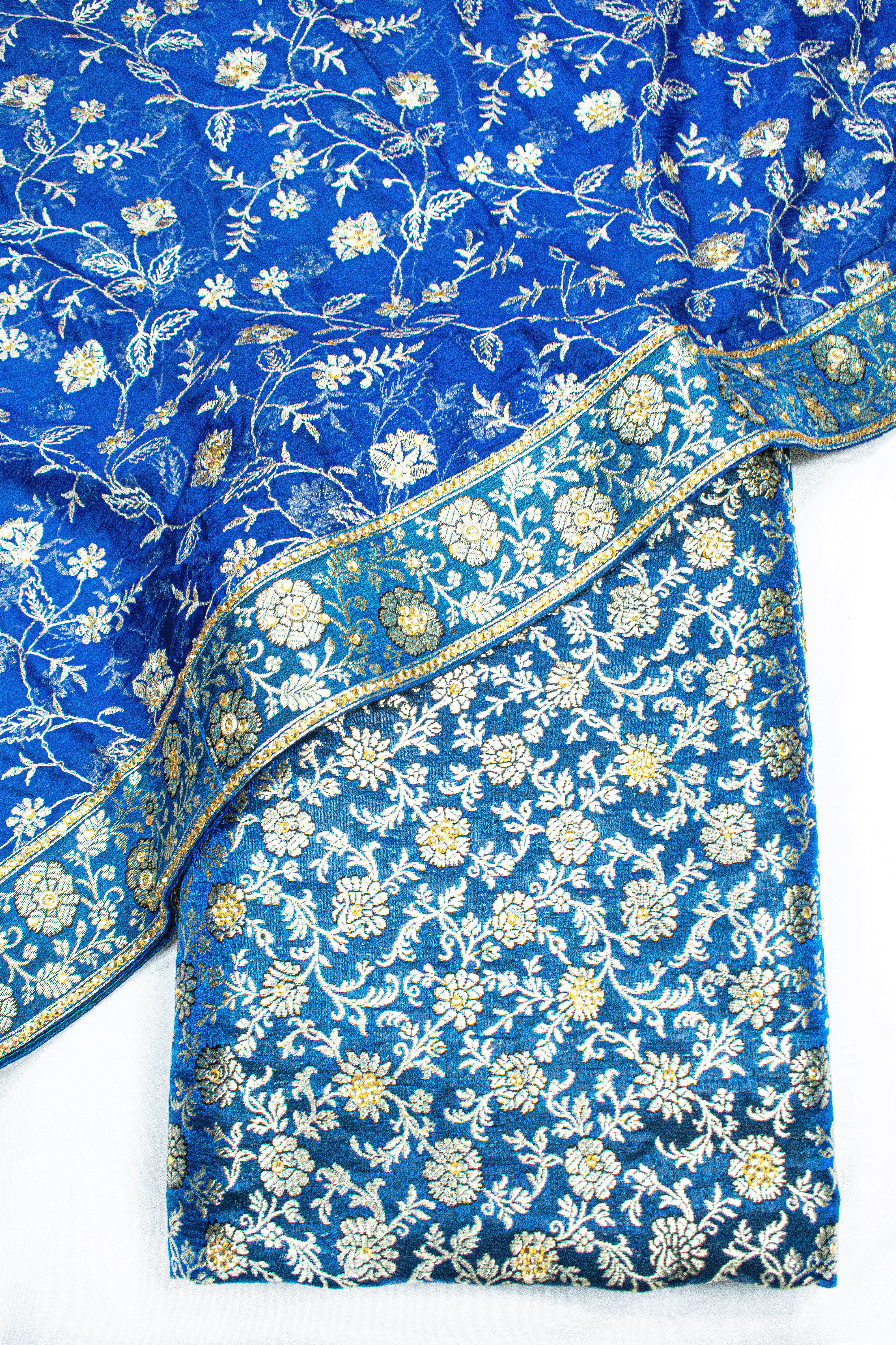 Fancy Heavy Design Blue Stone Kimkhab Silk Banarasi Gharara