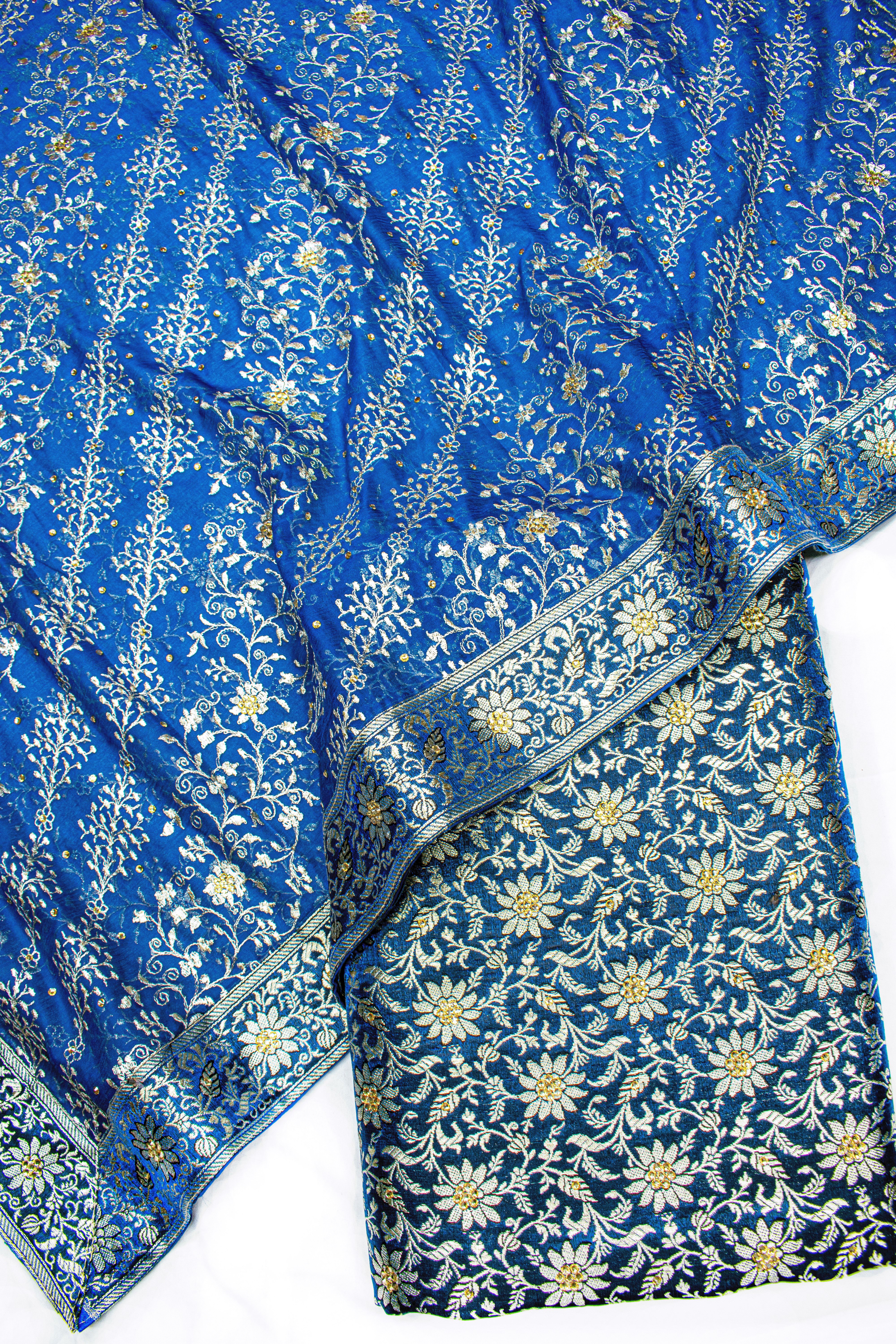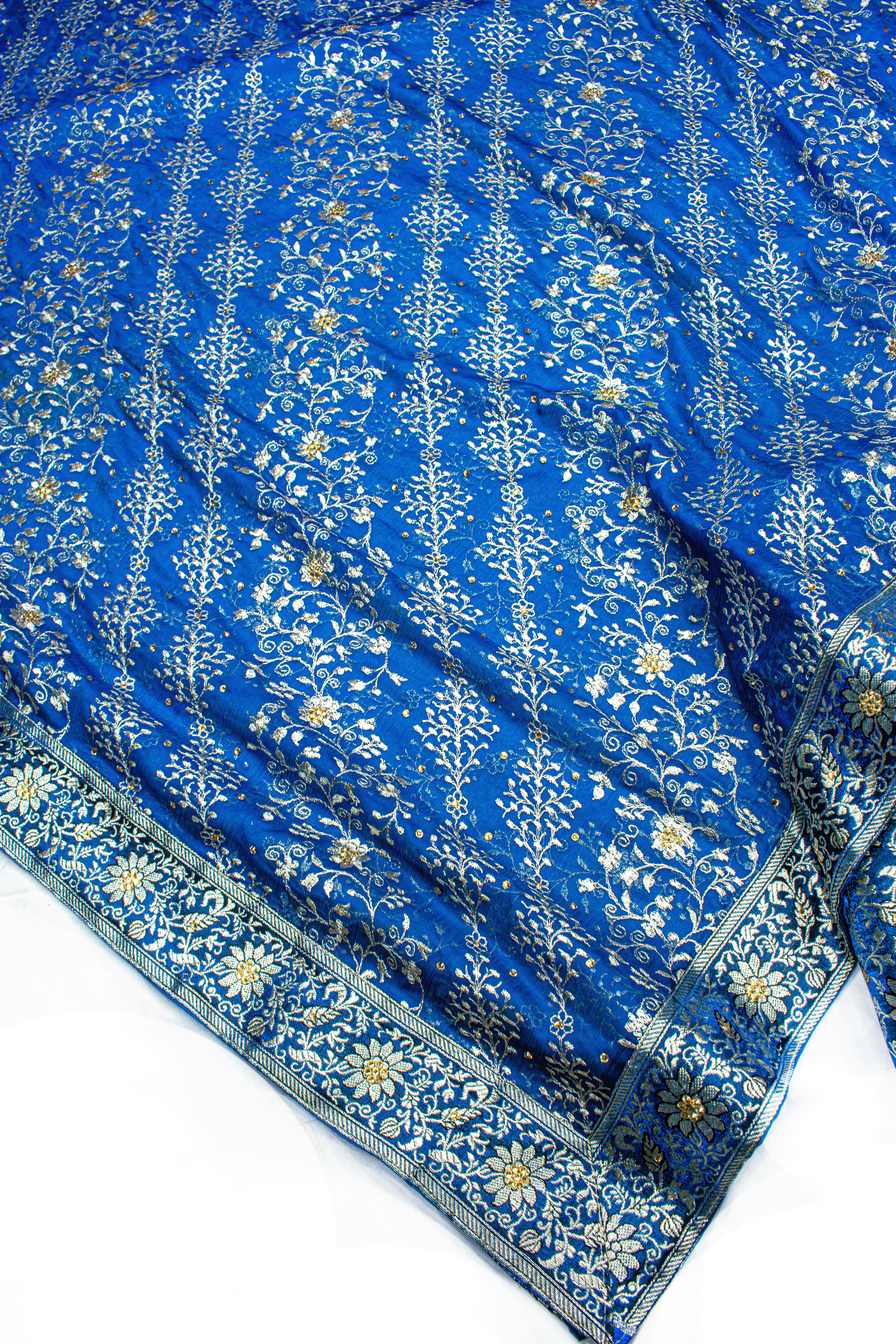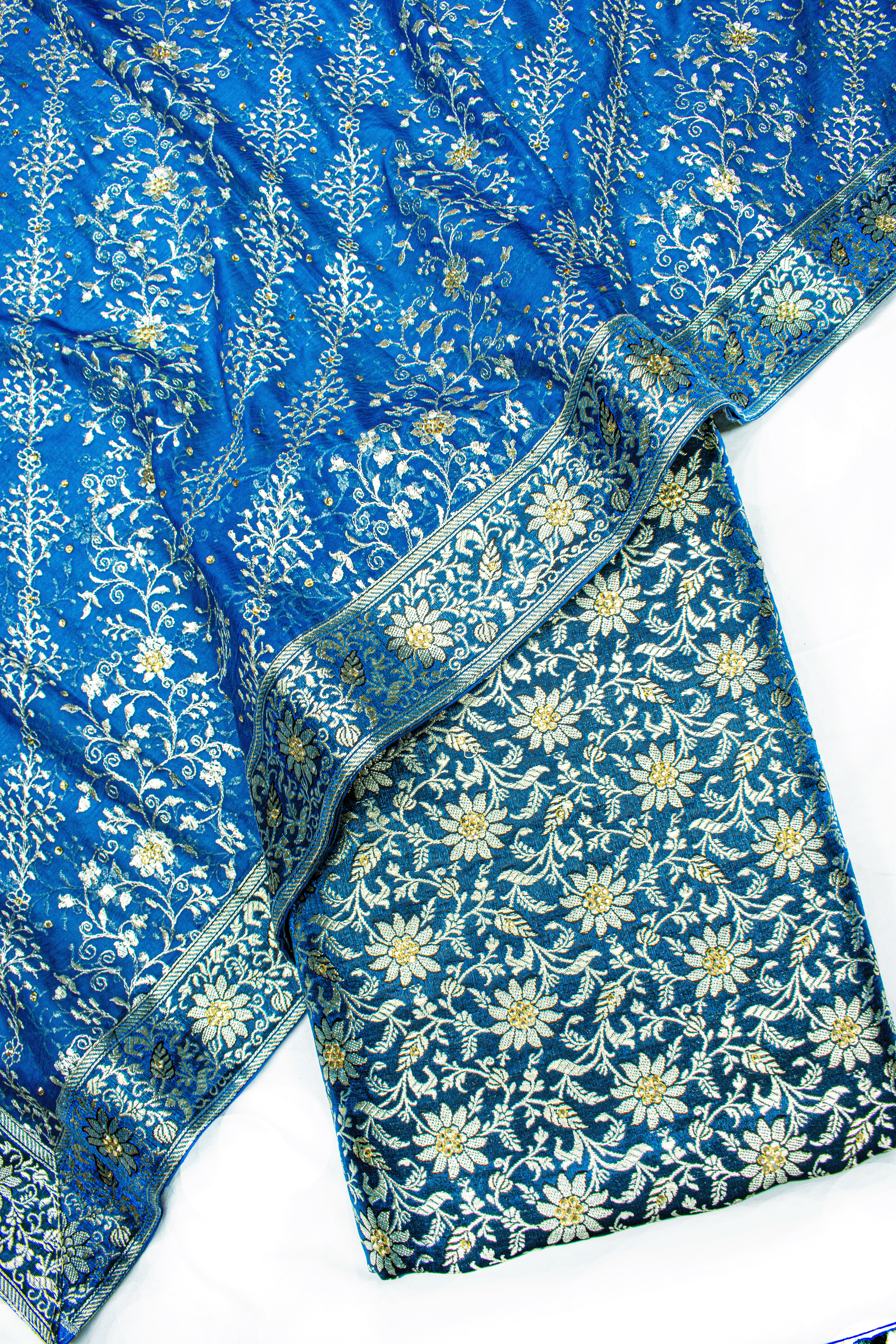 Fancy Lehirya Duppata Blue Stone Kimkhab Silk Banarasi Gharara Gharara