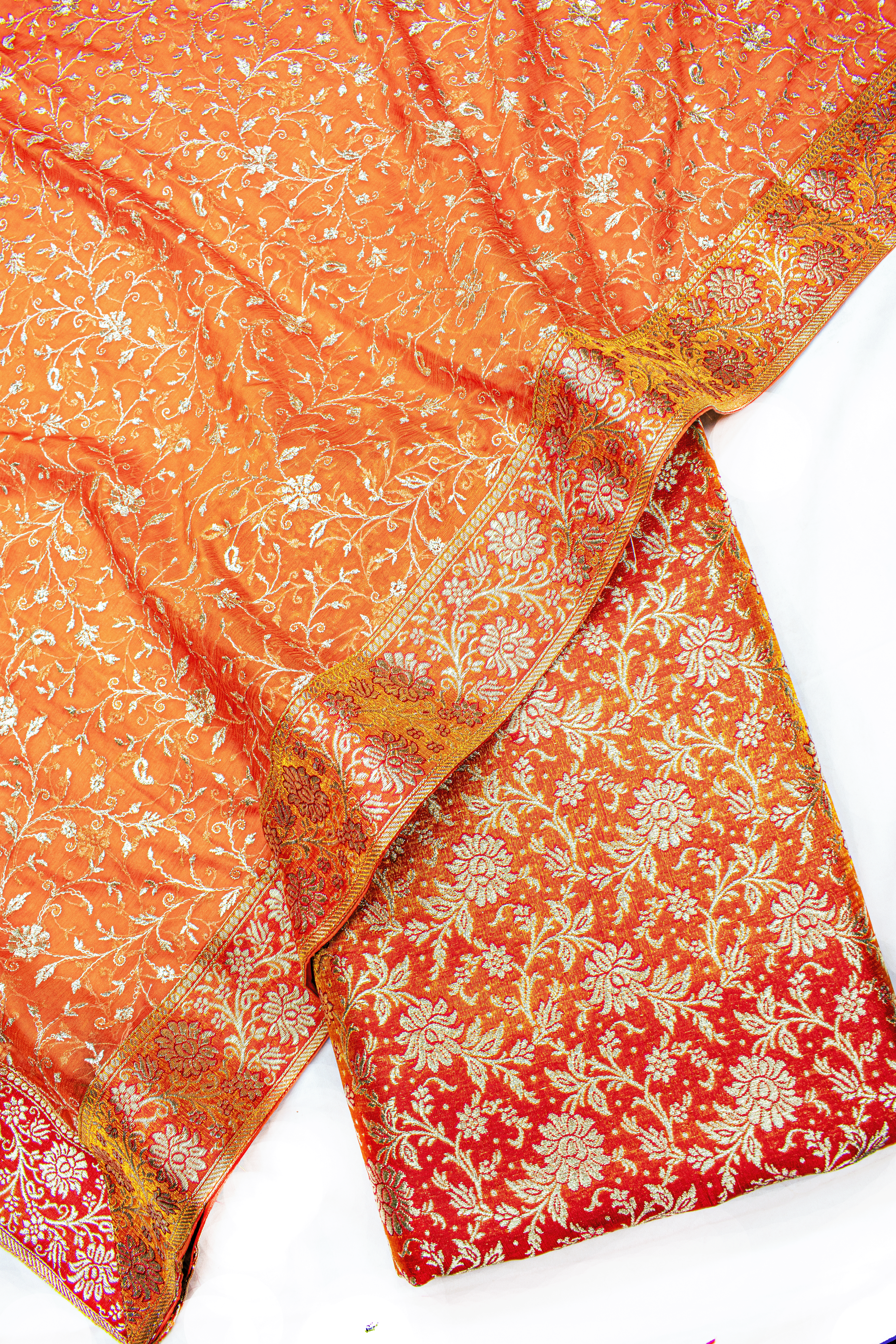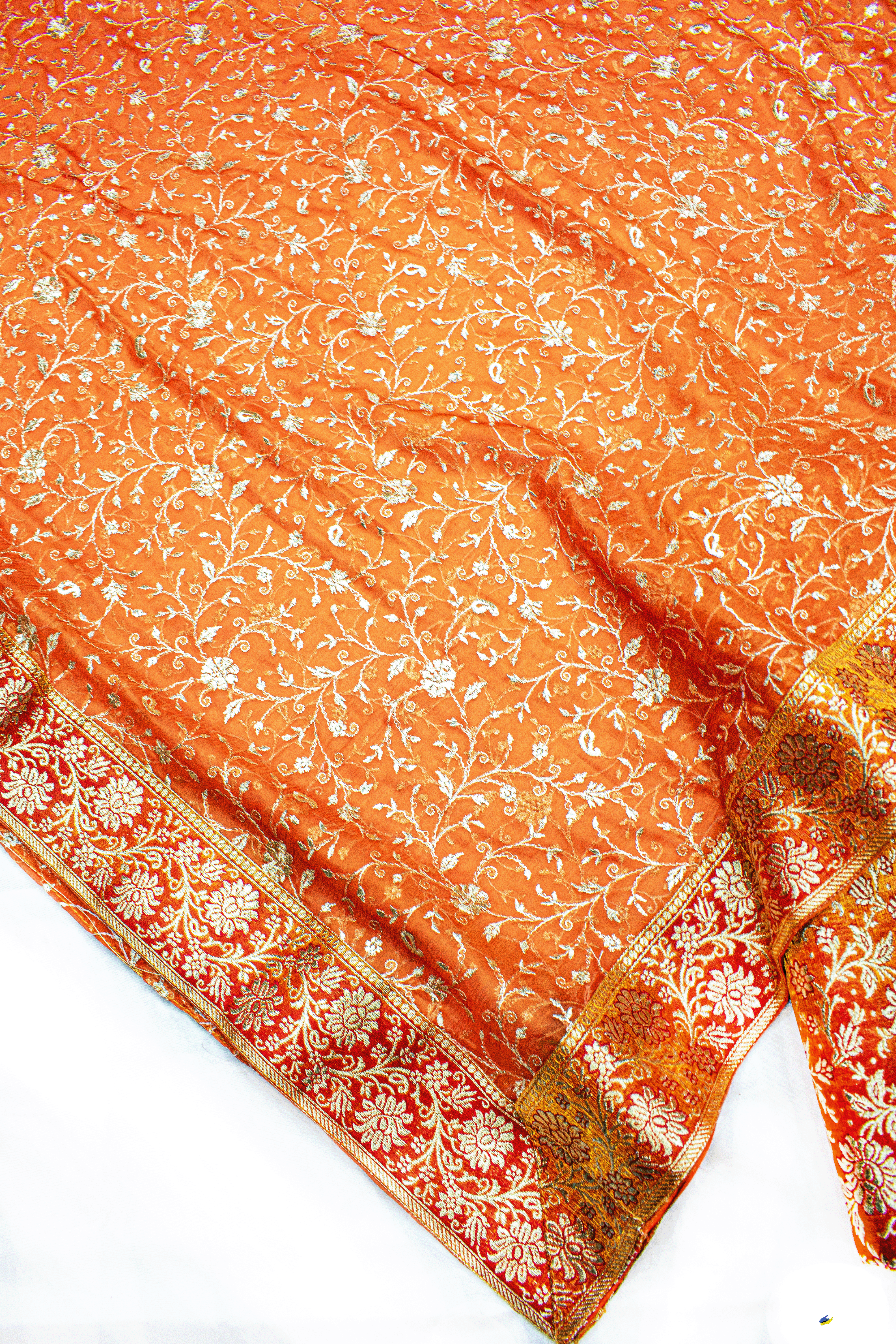 New Jaal Fancy Duppata Orange Kimkhab Silk Banarasi Gharara