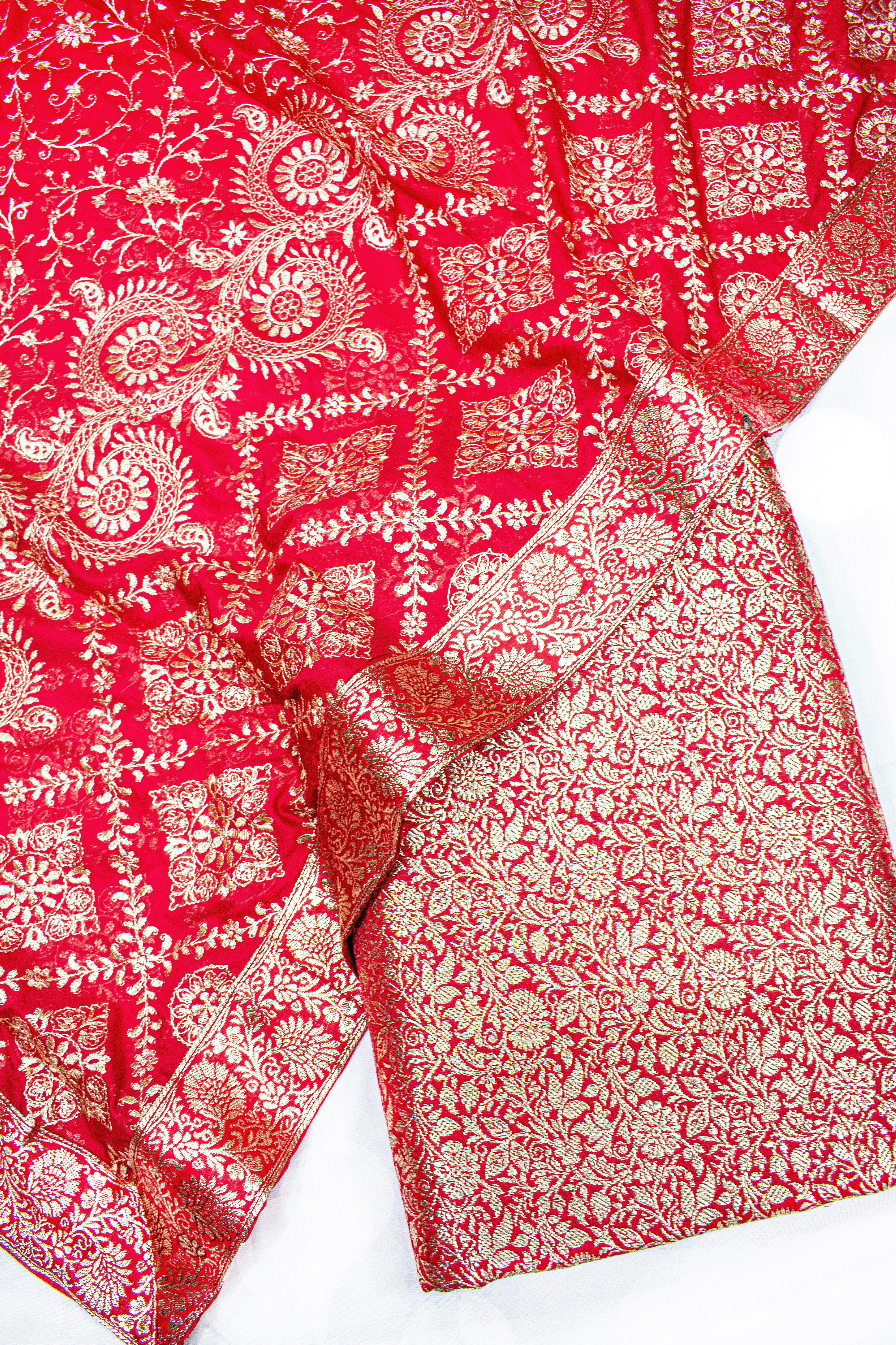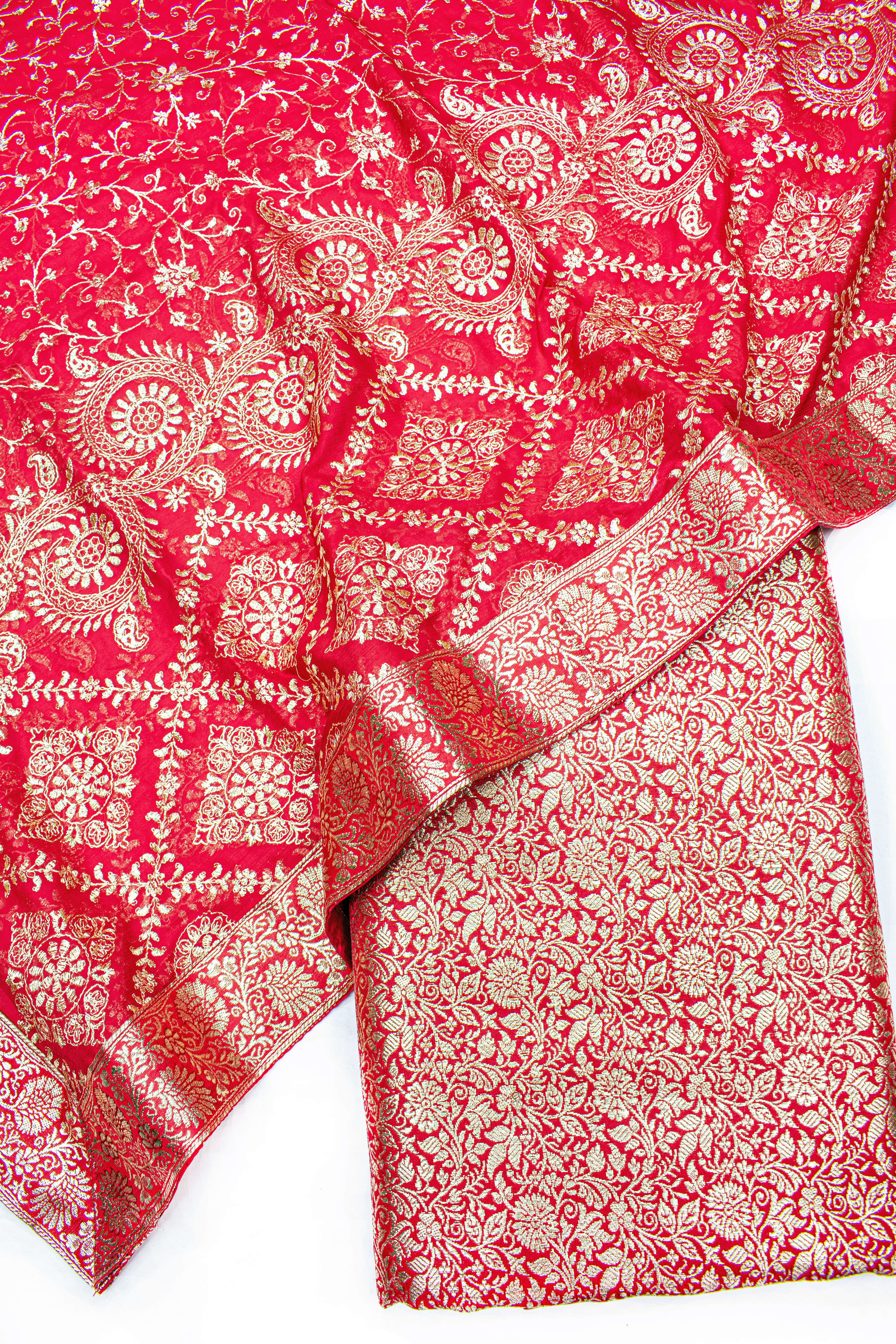 Latest Fancy Kadhai Designer Red Kimkhab Silk Banarasi Gharara