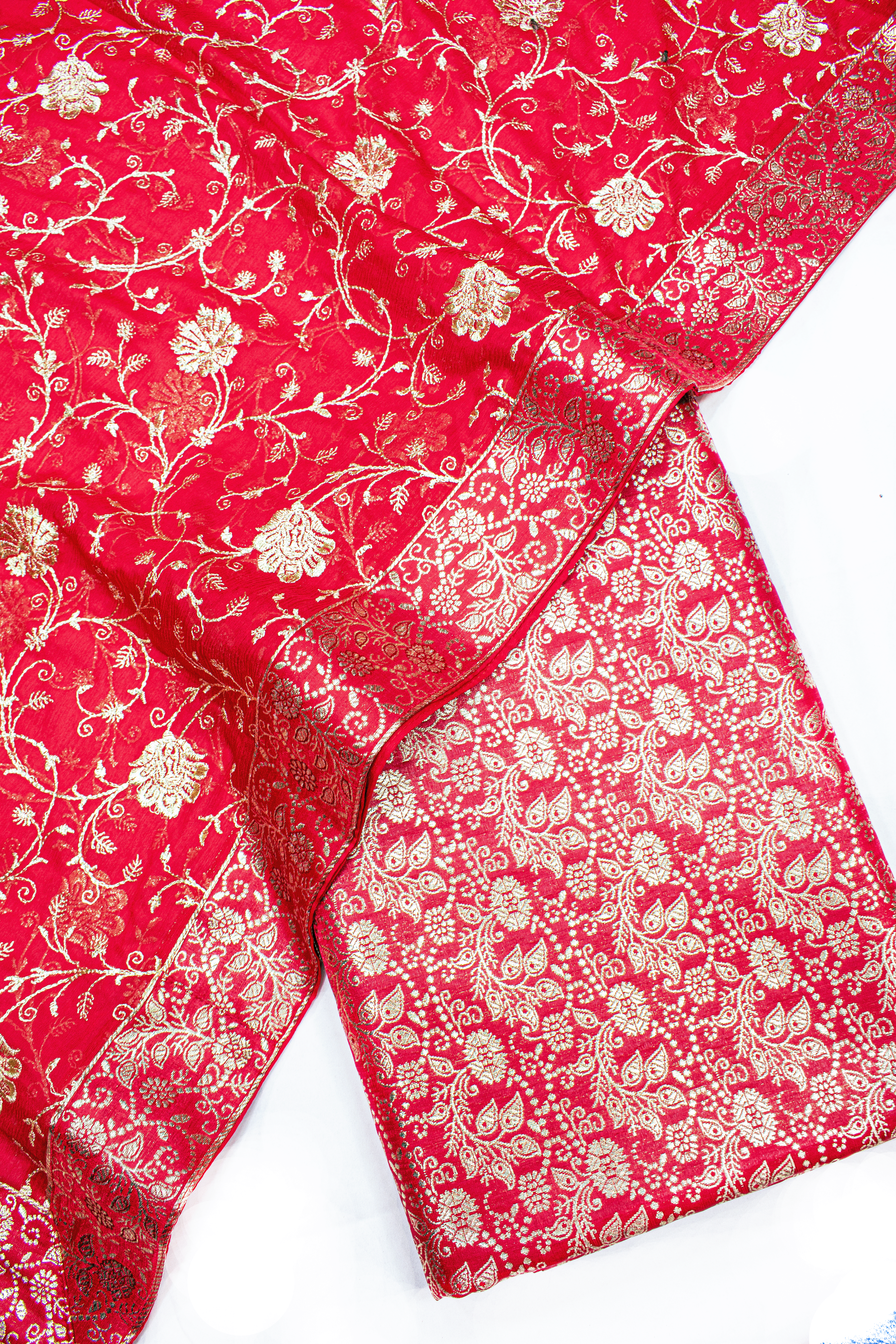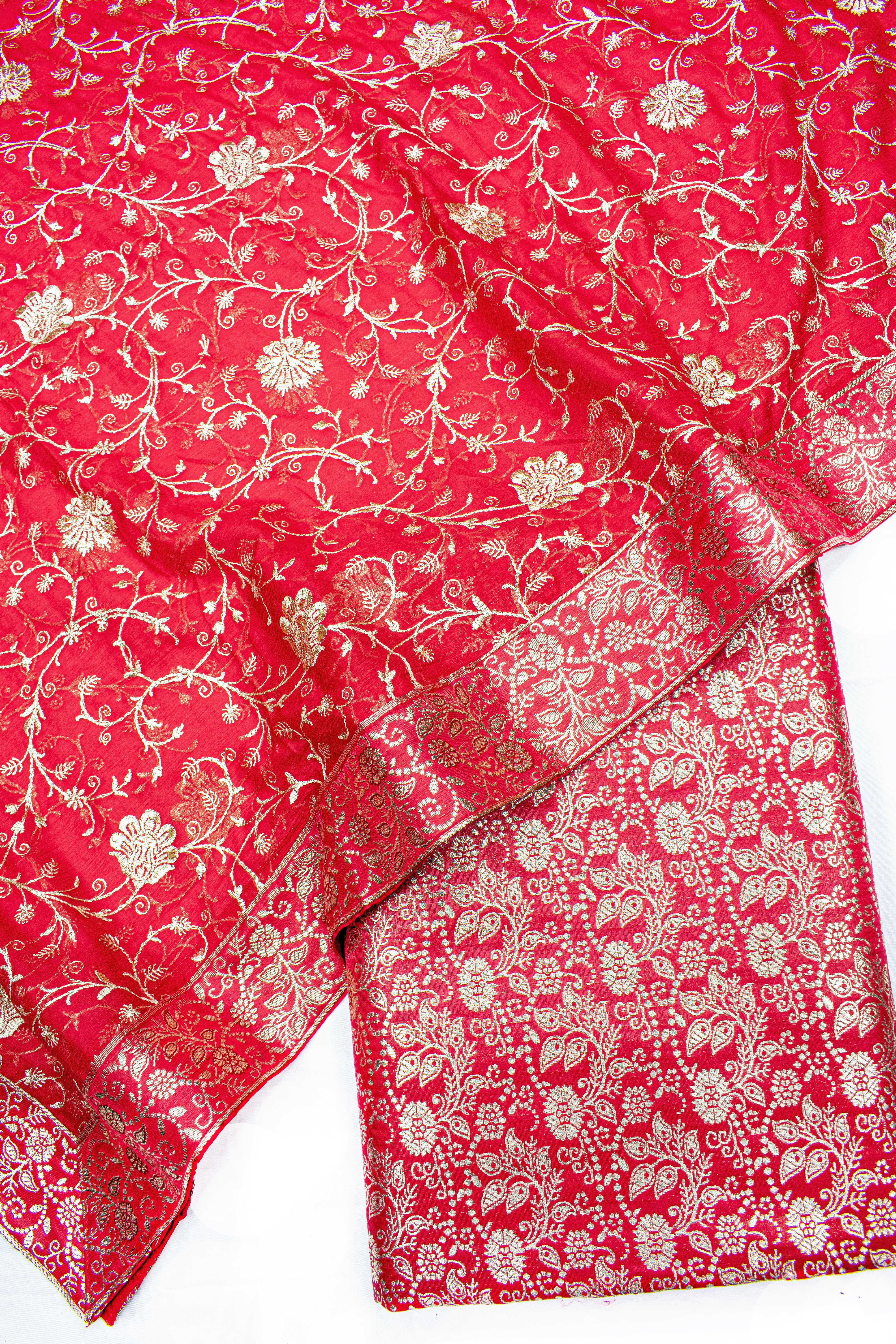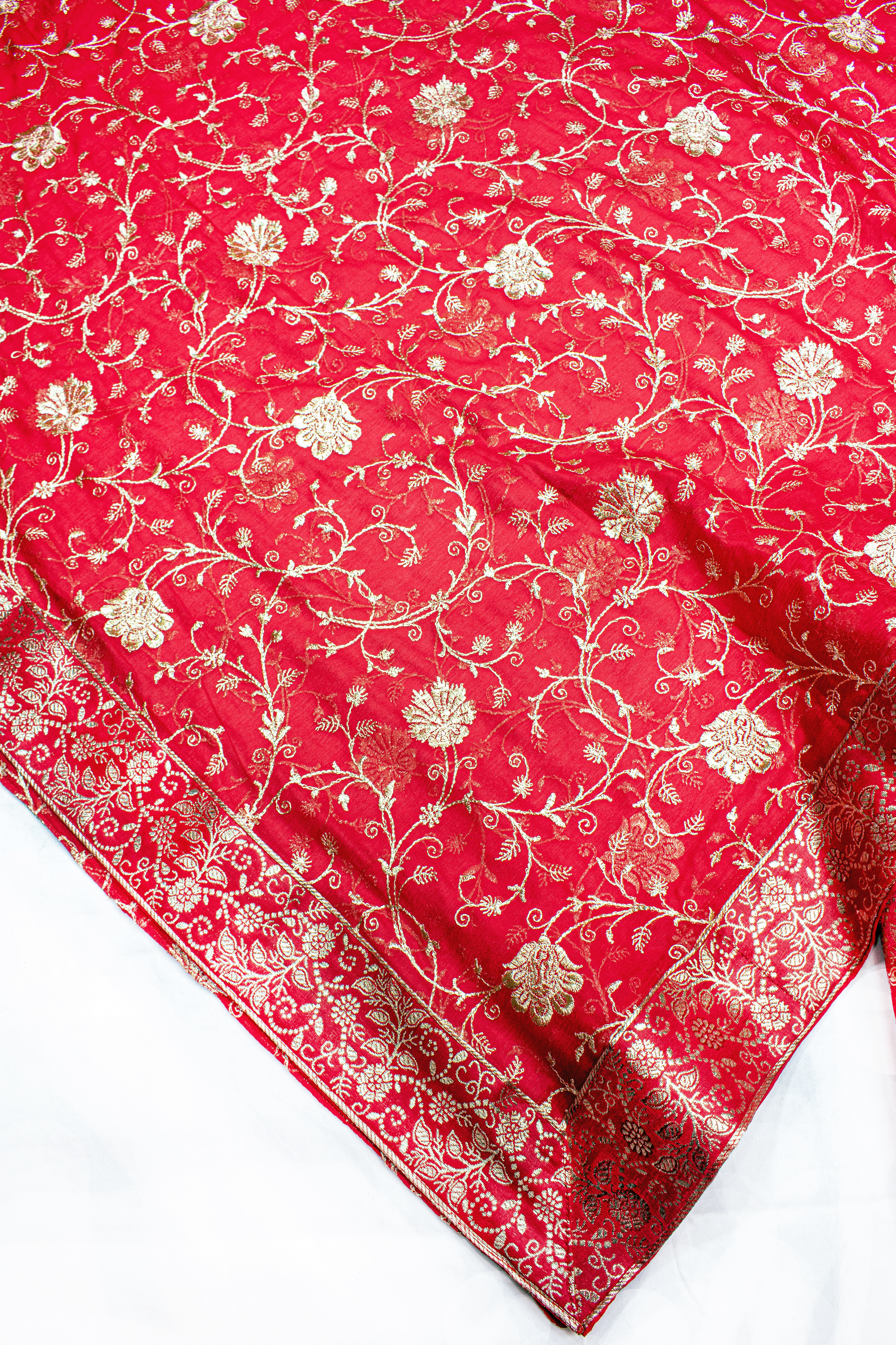 Latest Heavy Kadhai Designer Red Kimkhab Silk Banarasi Gharara