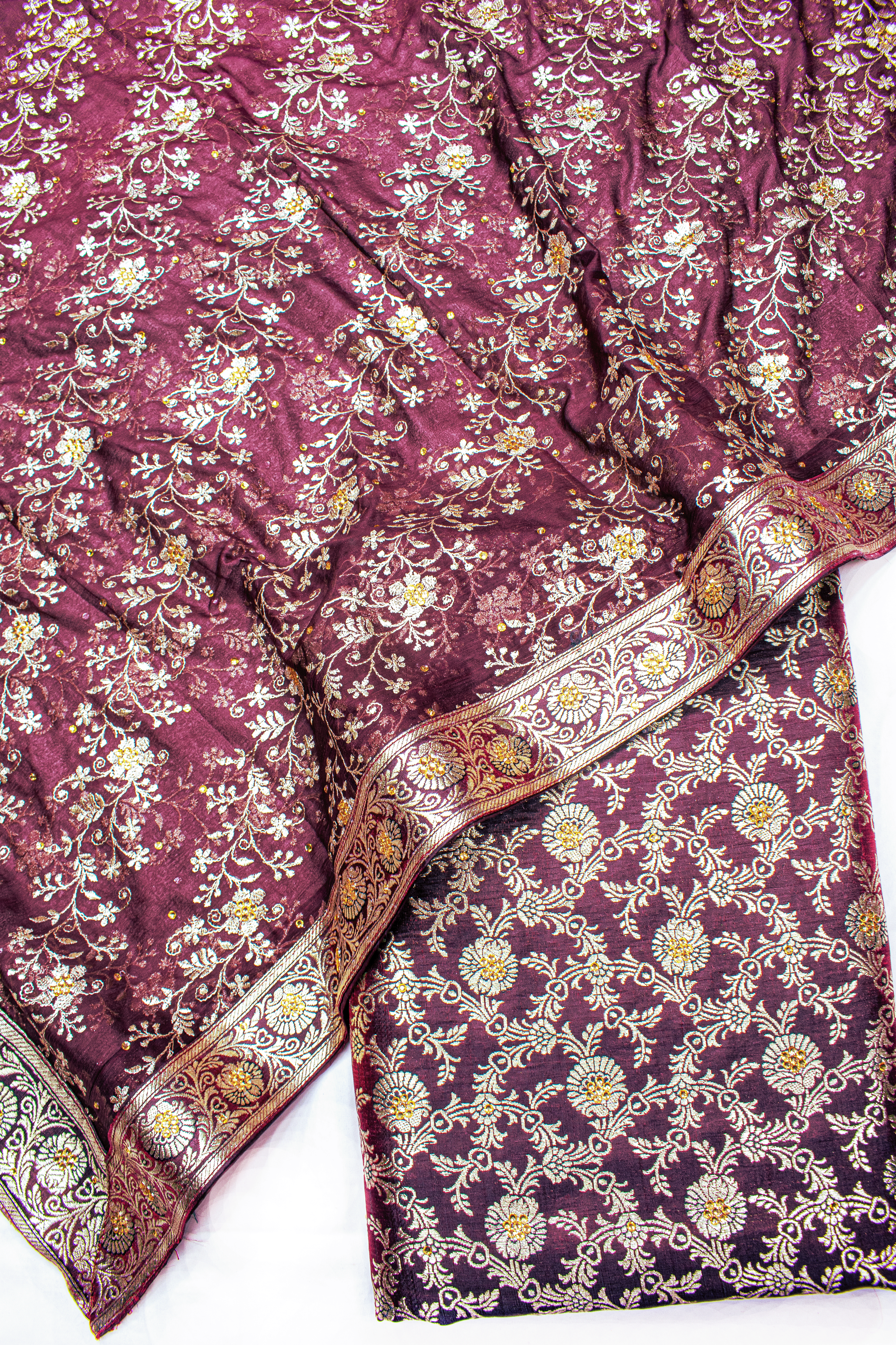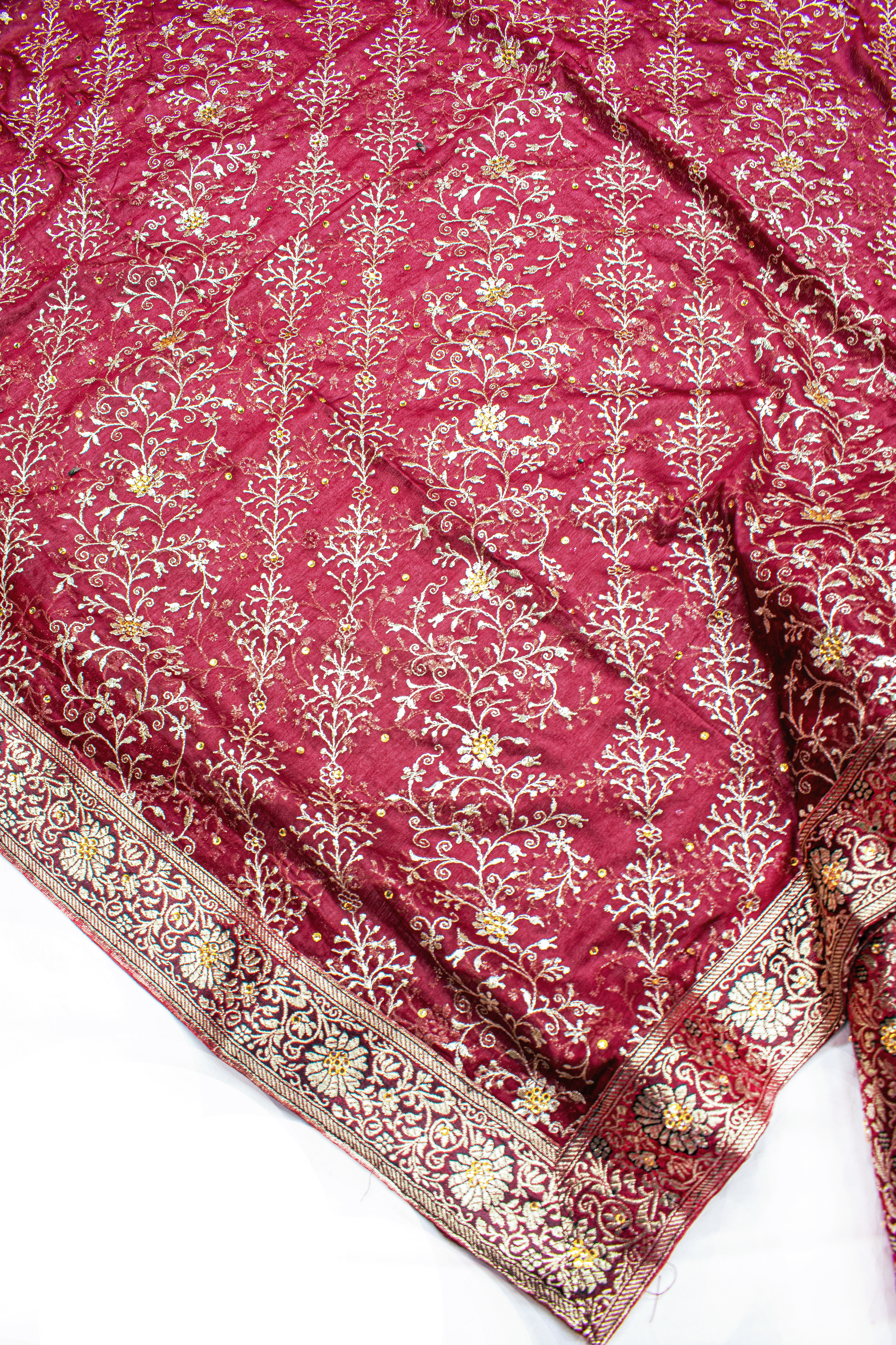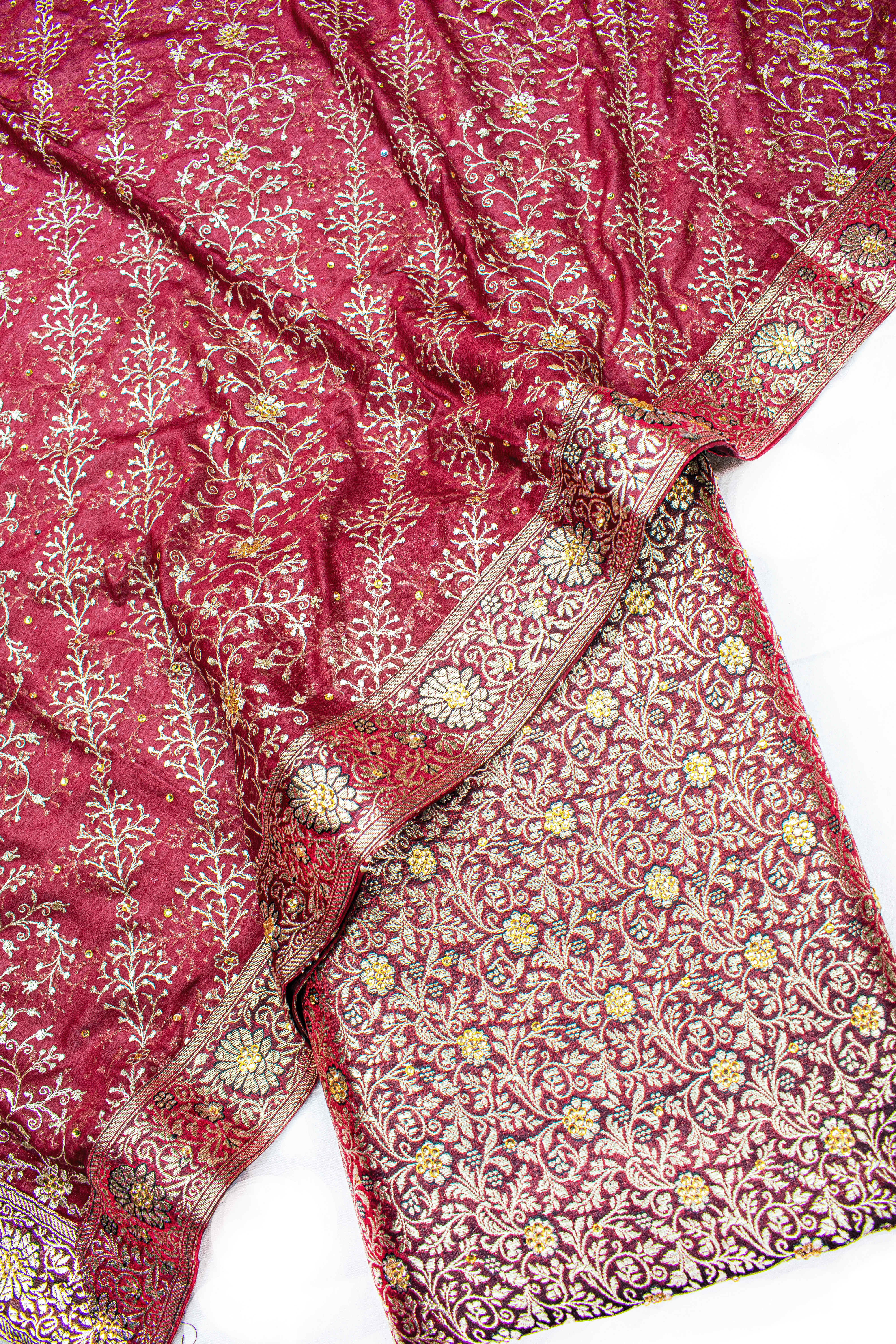 Maroon Stone Kimkhab Silk Banarasi Gharara With Lehirya Duppata