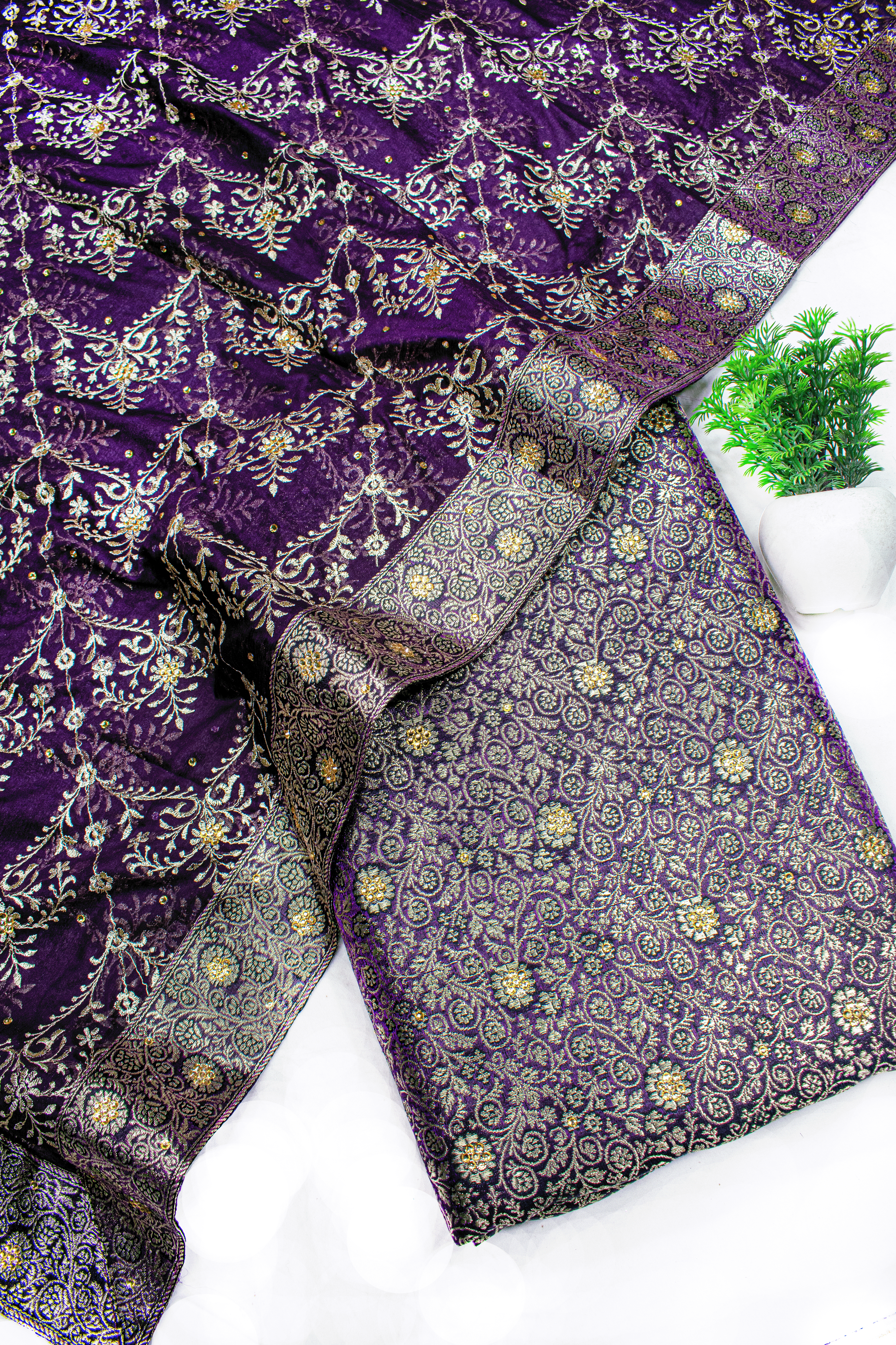 New Fancy Duppata Purple Stone Kimkhab Silk Banarasi Gharara