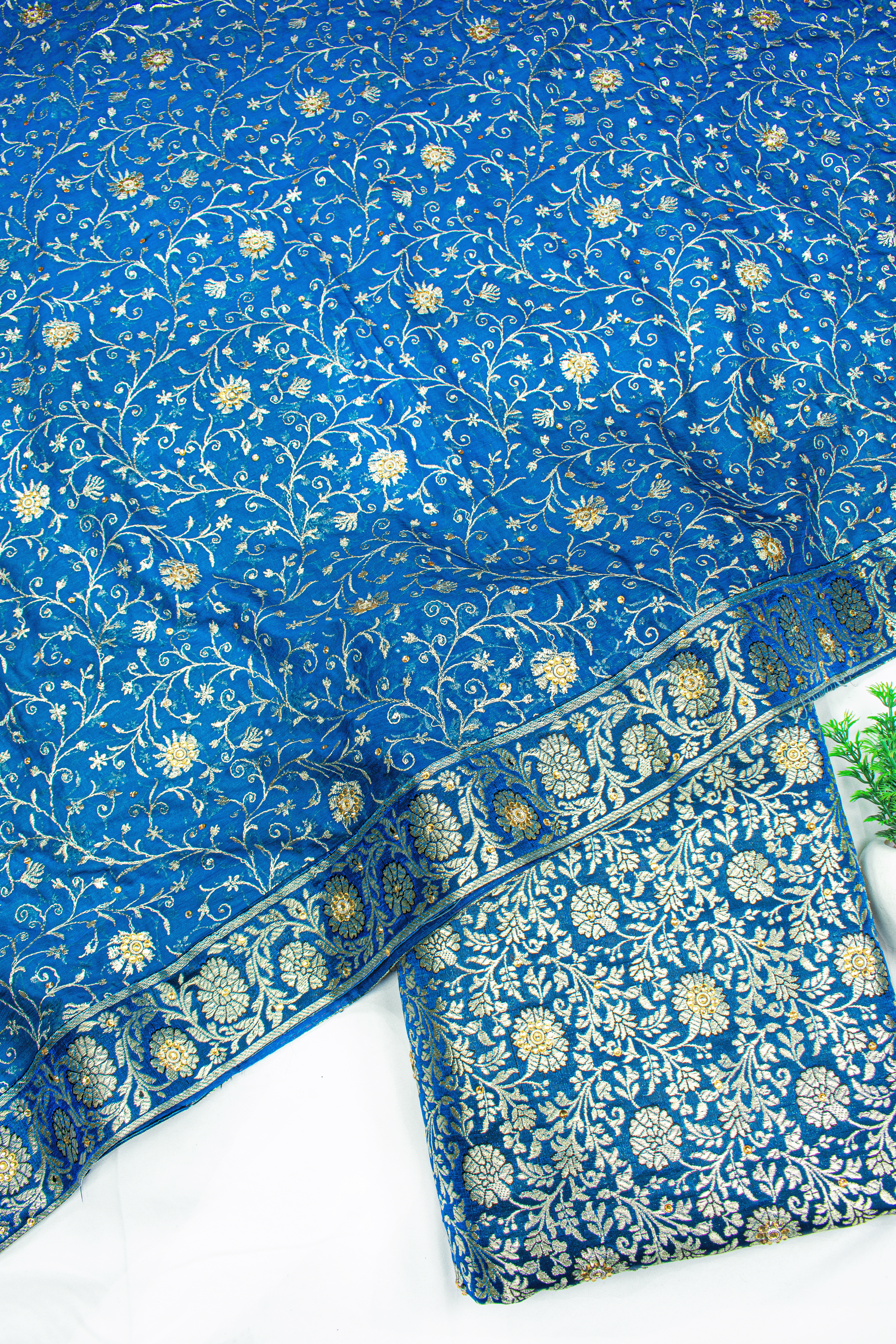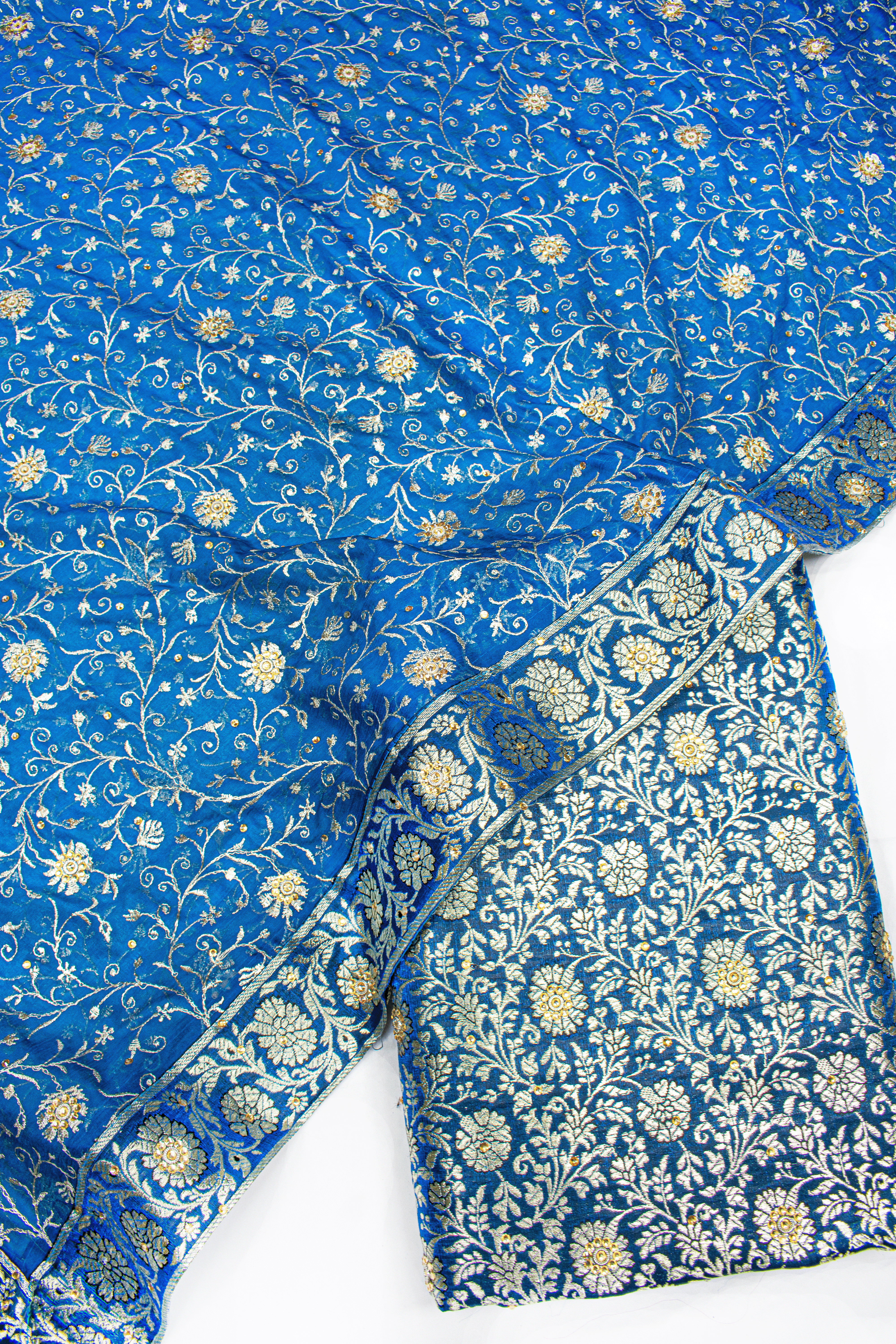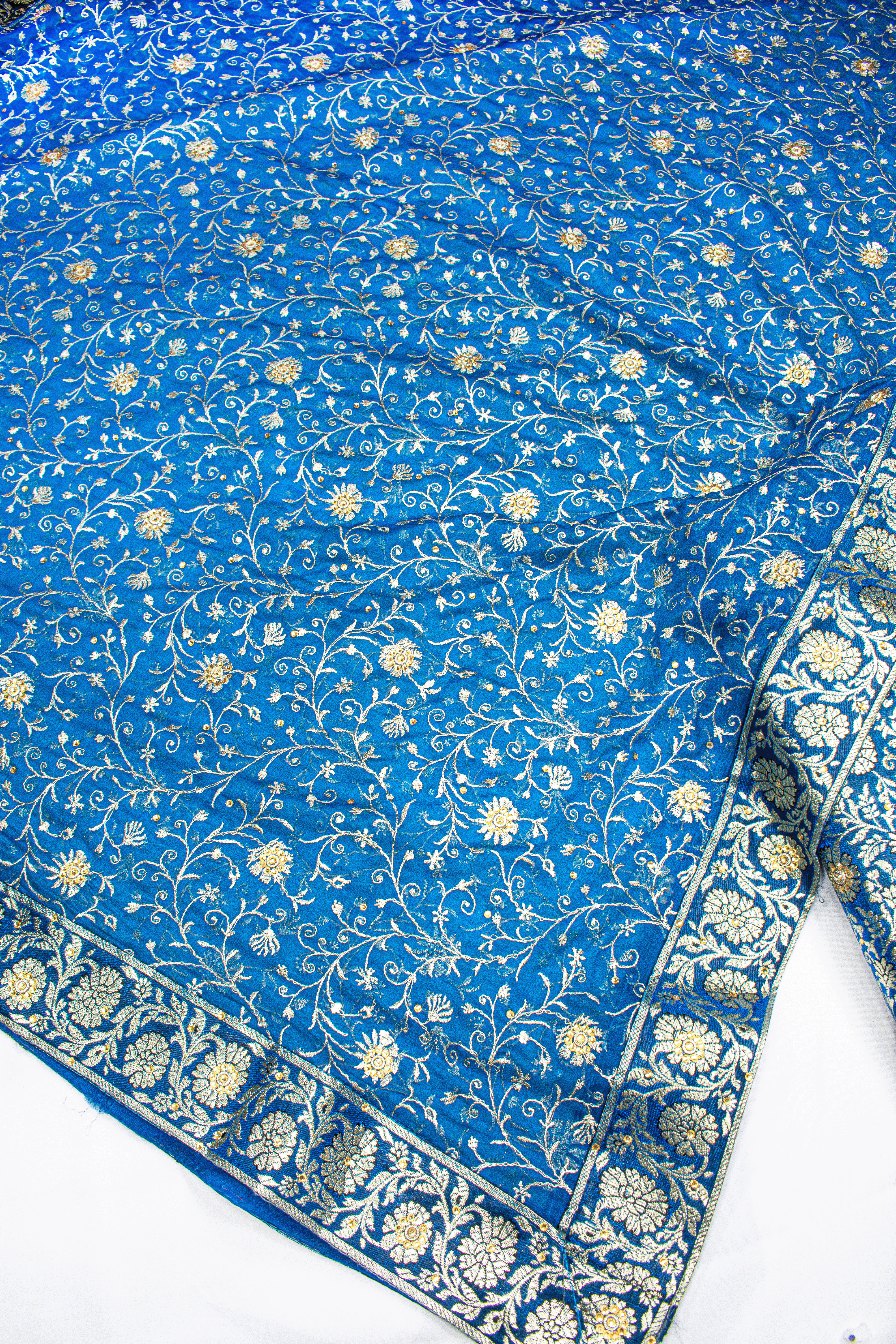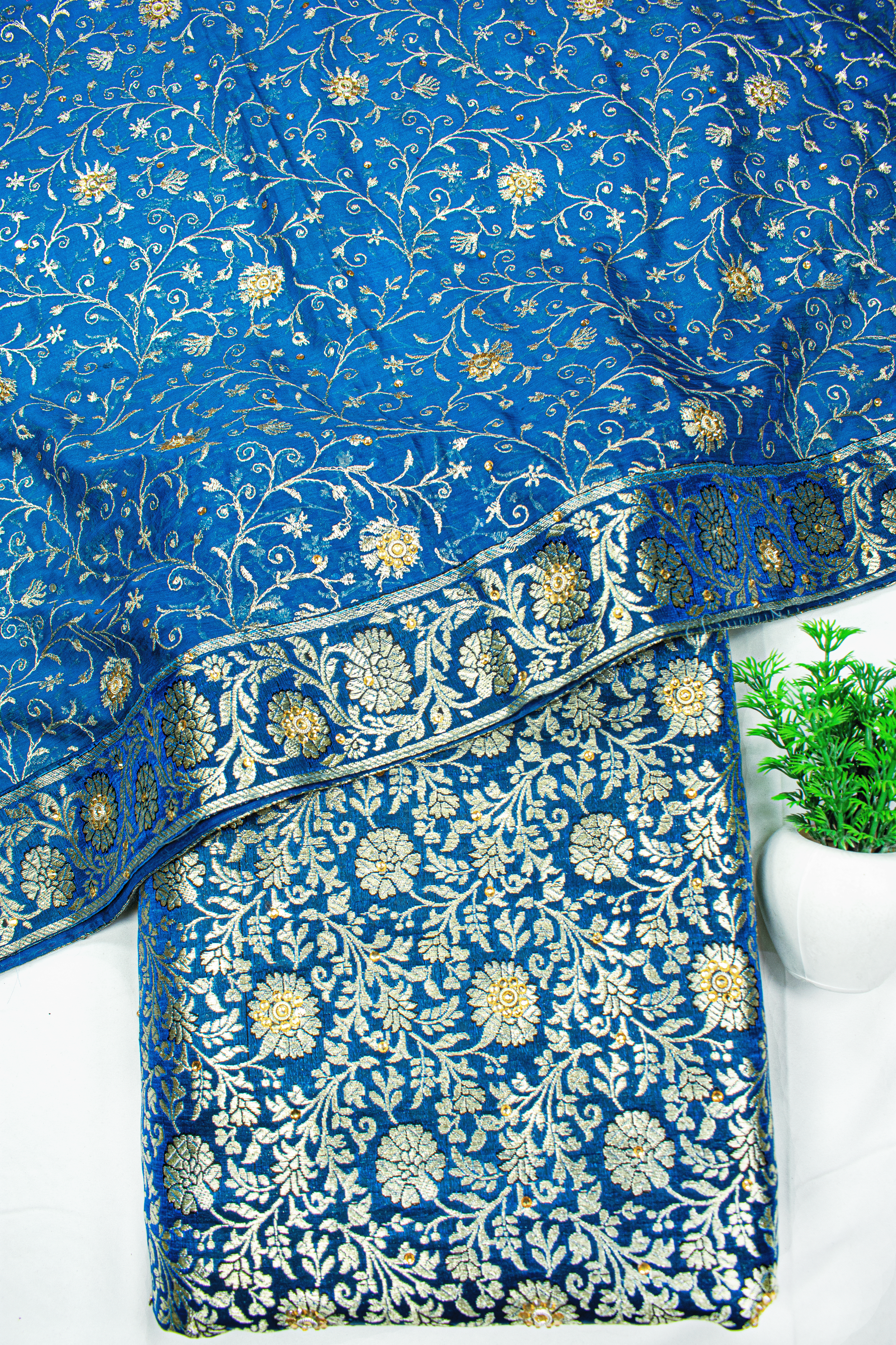 New Fancy Jaal Duppata Blue Stone Kimkhab Silk Banarasi Gharara