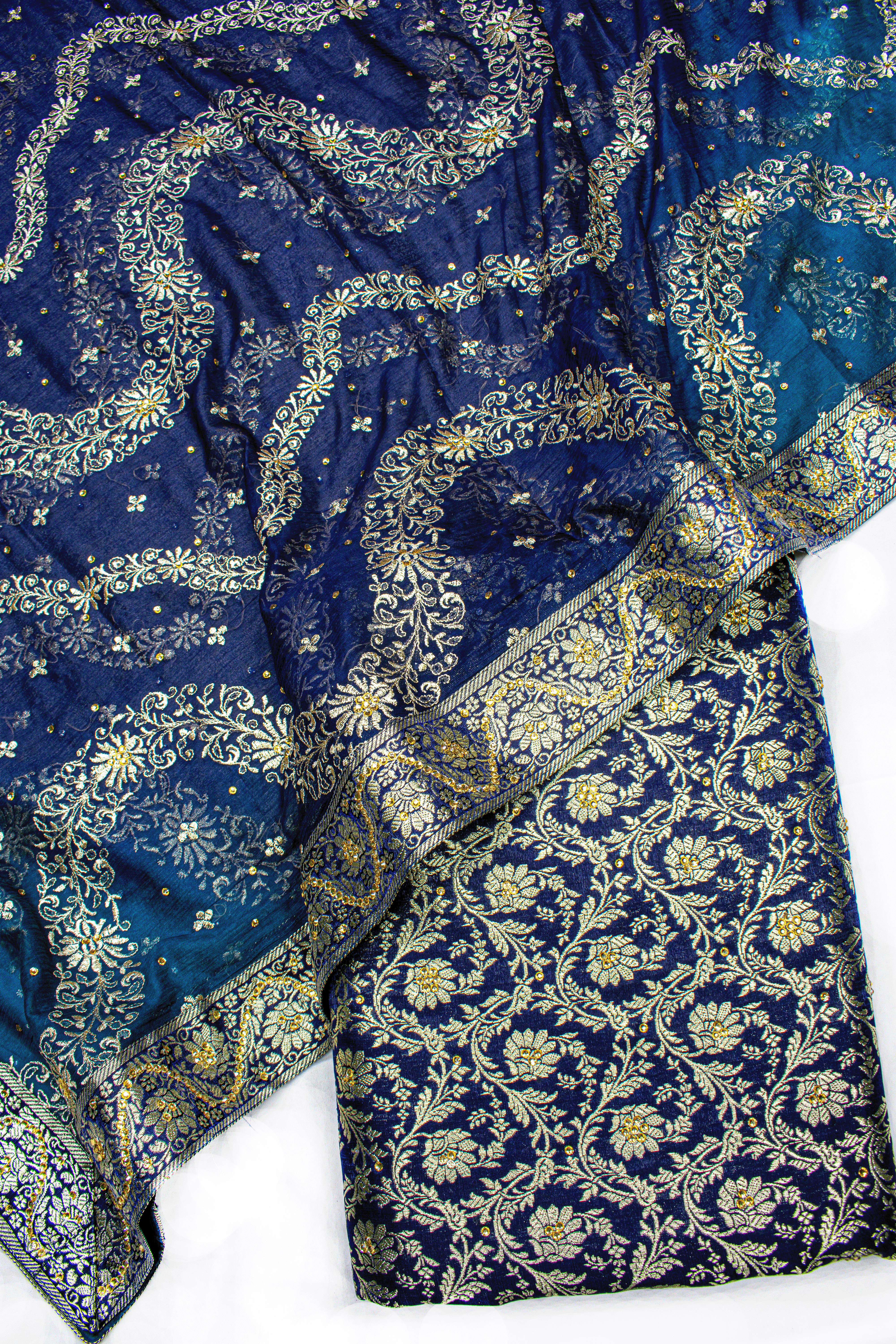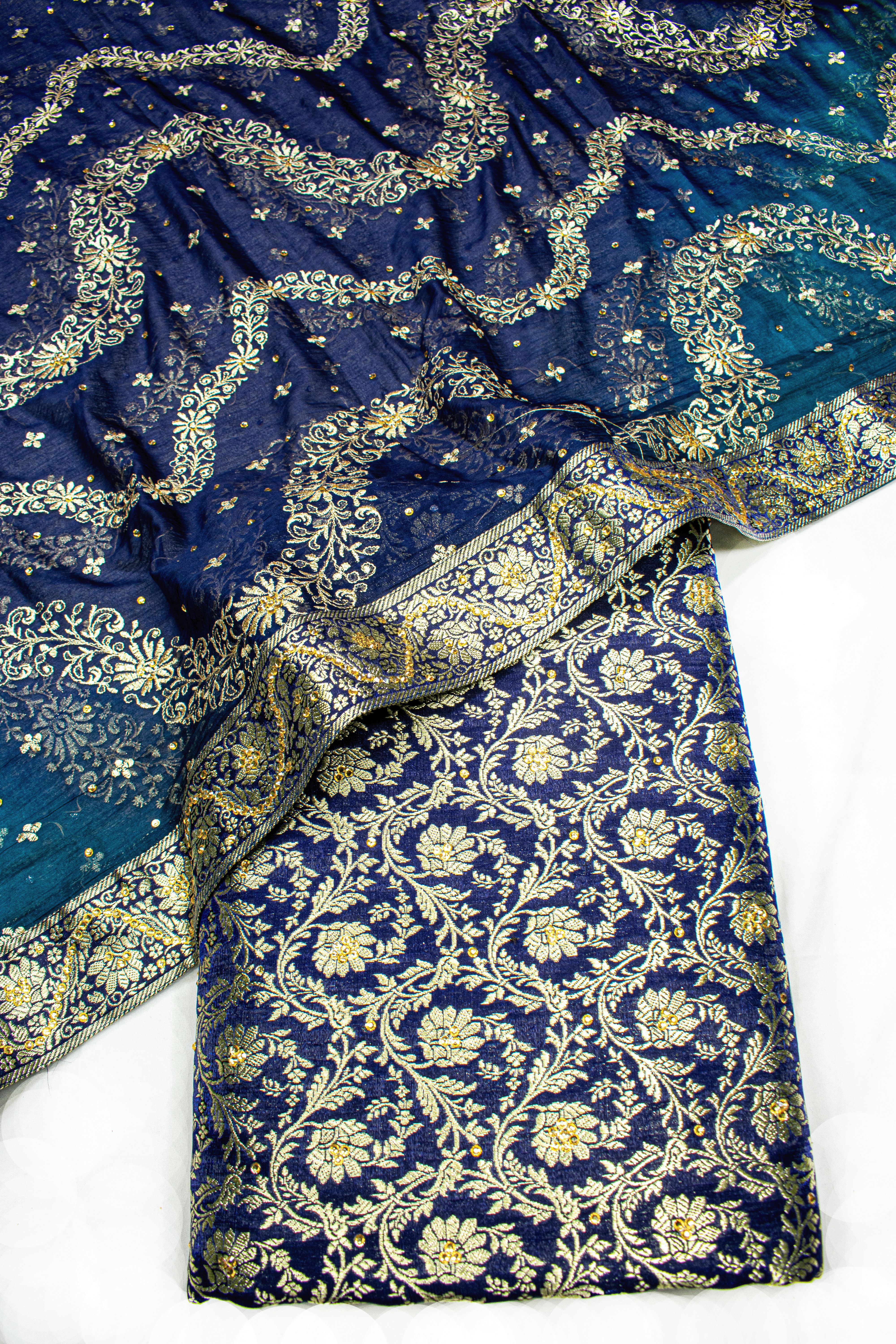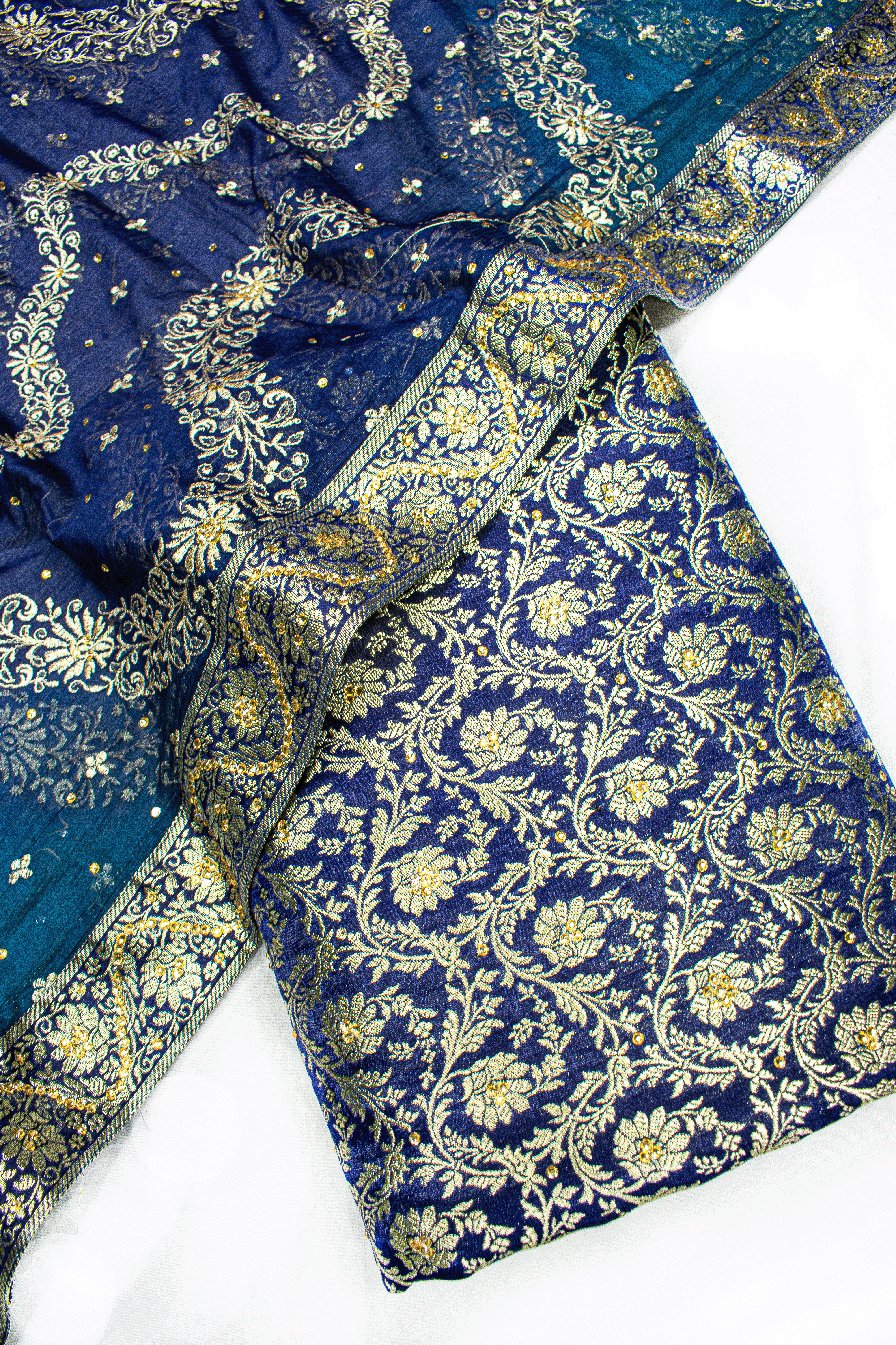 Floral Gharara in Navy Blue with Stonework & Shaded Dupatta