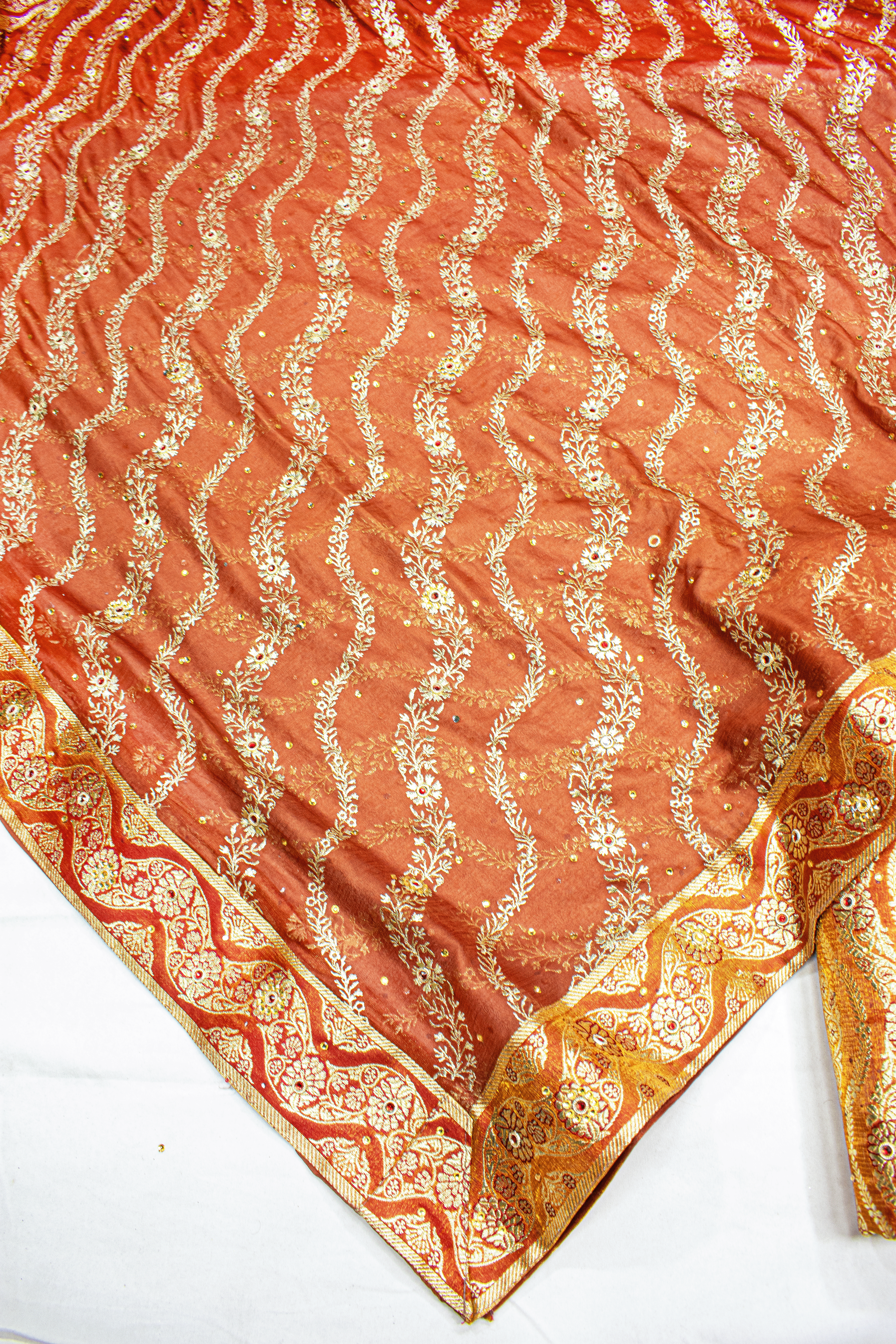 New Lehirya Design Orange Stone Kimkhab Silk Banarasi Gharara