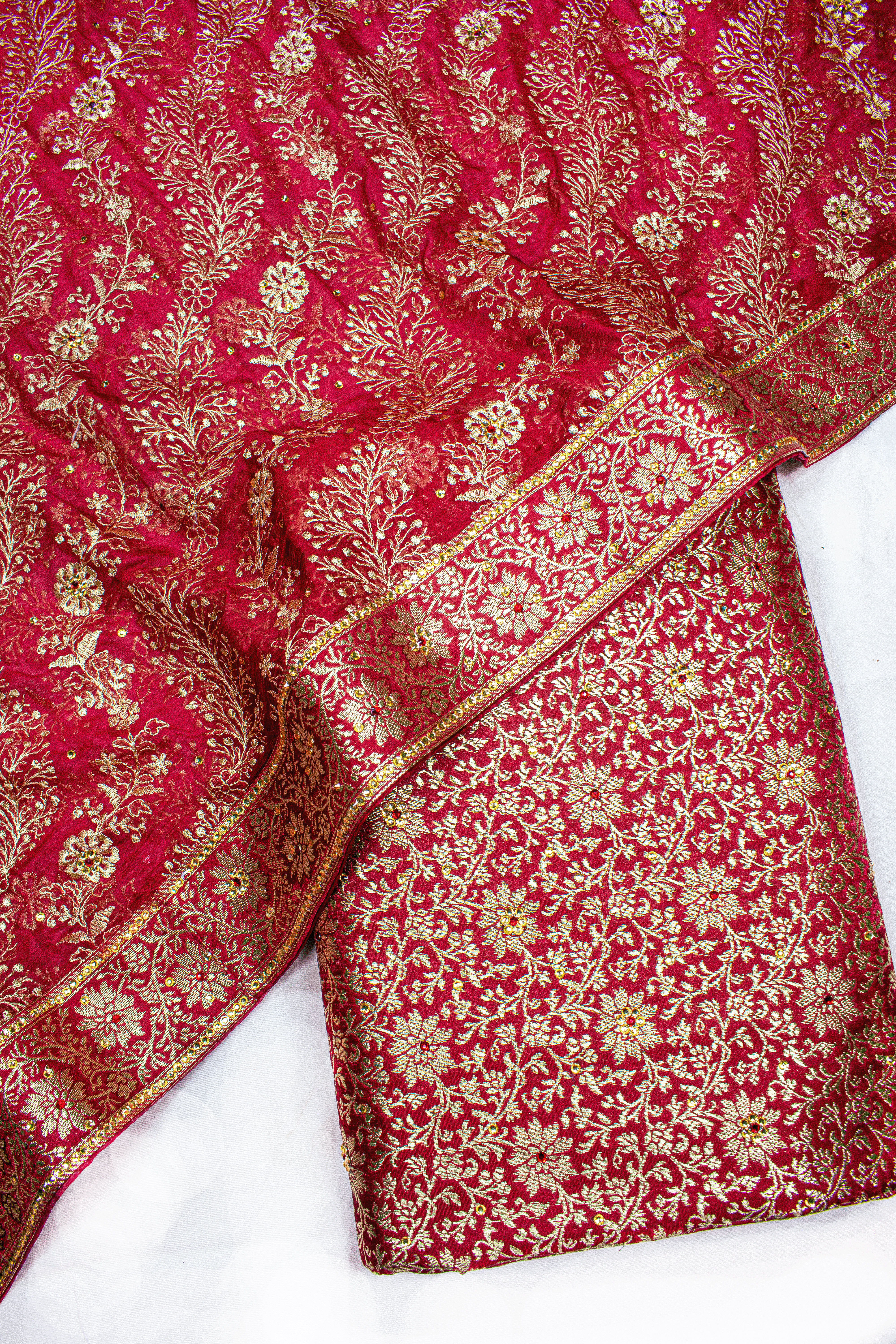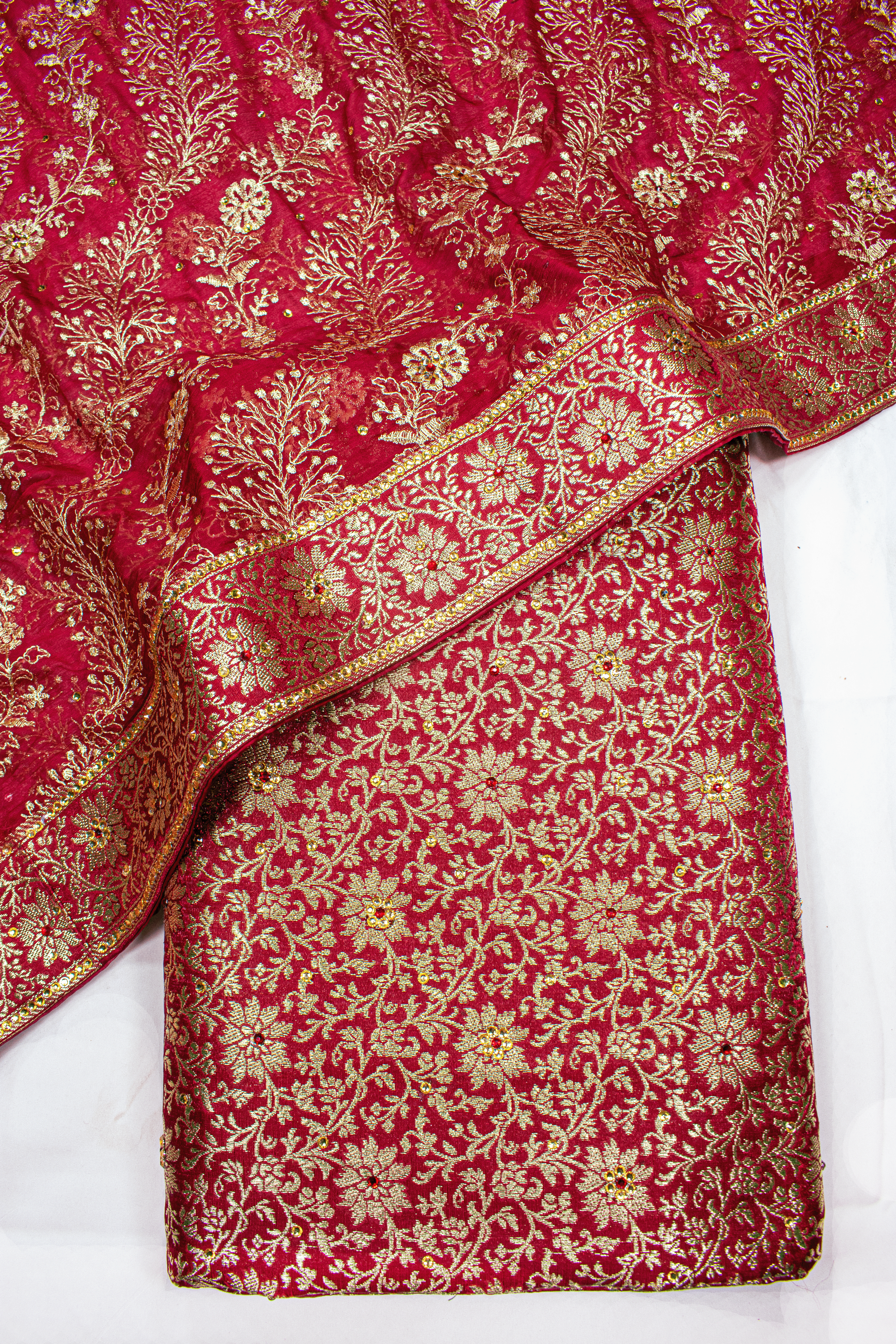 New Maroon Lehirya Duppata Stone Kimkhab Silk Banarasi Gharara