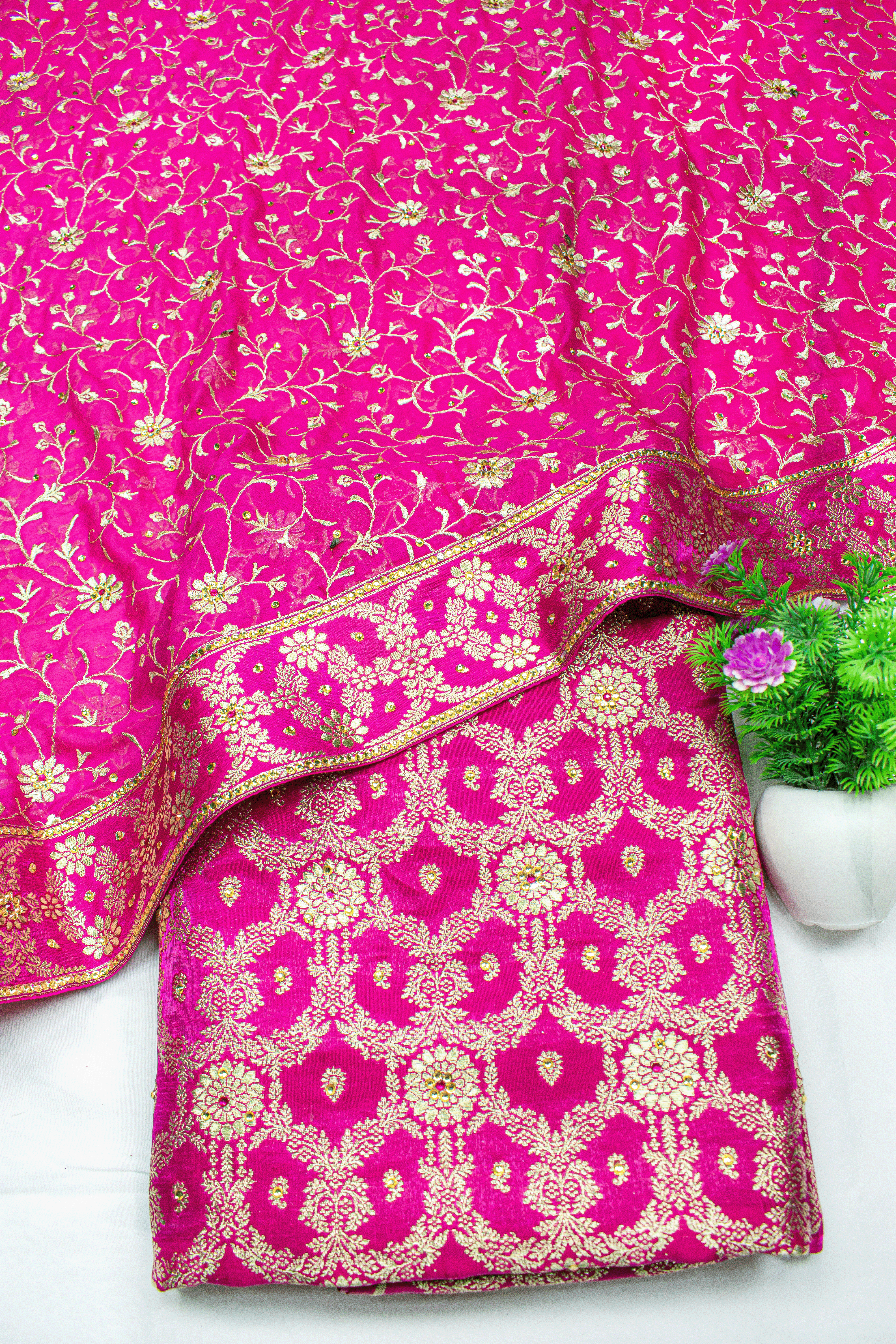 Trending Design Rani Pink Stone Kimkhab Silk Banarasi Gharara